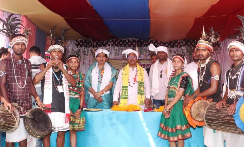 दुर्गूकोंदल में सर्व आदिवासी विश्राम गृह का लोकार्पण कार्यक्रम में शामिल हुए कृषि मंत्री रामविचार नेताम ।