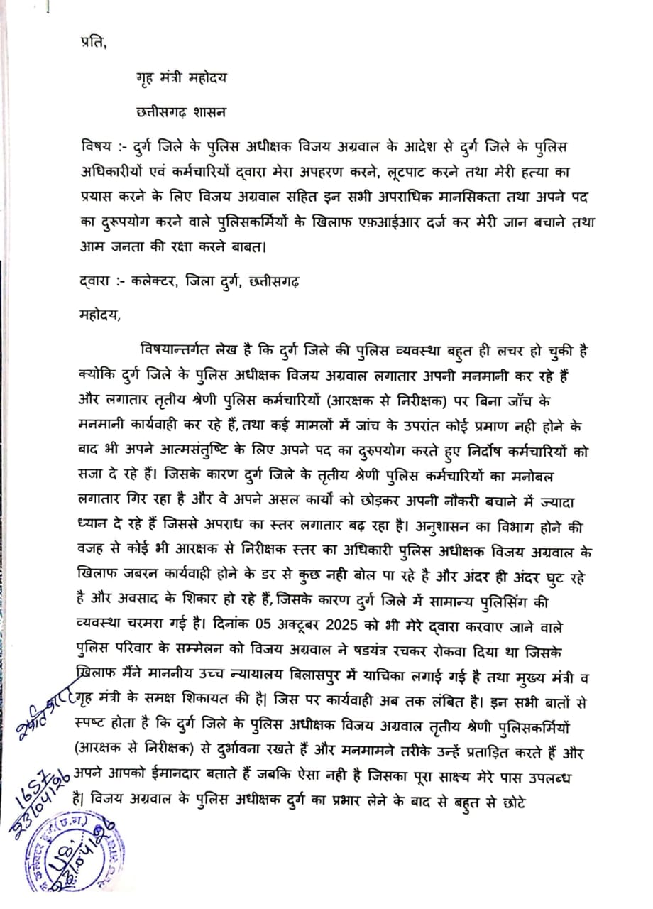 छत्तीसगढ़ पुलिस की कार्यवाही लगातार विवादों में बनी हुई है और पुलिस की कार्यवाहियों पर लगातार शिकायतें हो रही हैं, और अब एक नया मामला सामने आ गया है, जो उज्जवल दीवान पुलिस के हक और अधिकार के लिए लड़ता है आज उसने ही दुर्ग जिले के पुलिस अधीक्षक और उनकी बाहुबली टीम पर गम्भीर आरोप लगा दिए हैं। इससे दुर्ग पुलिस की कार्यशैली सवालों के कटघरे में खड़े हो गई है।