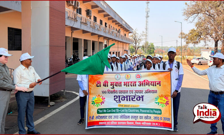 गरियाबंद, 24 मार्च 2026/विश्व क्षय दिवस के अवसर पर जिला मुख्यालय गरियाबंद में “टी.बी. मुक्त भारत अभियान” के 100 दिवसीय द्वितीय चरण का शुभारंभ संयुक्त जिला कार्यालय के परिसर से किया गया। इस दौरान कलेक्टर श्री बीएस उइके उईके ने अभियान का विधिवत उद्घाटन करते हुए स्वास्थ्य विभाग एवं शिवम् नर्सिंग कॉलेज के विद्यार्थियों द्वारा निकाली गई प्रचार रैली और सर्वे दल को हरी झंडी दिखाकर रवाना किया। इस अवसर पर उन्होंने टी.बी. मुक्त भारत के लिए शपथ भी दिलाई। उन्होंने कहा कि 24 मार्च से प्रारंभ यह अभियान टी.बी. उन्मूलन की दिशा में एक महत्वपूर्ण पहल है। इसके तहत मितानिन और स्वास्थ्य कार्यकर्ता घर-घर जाकर उच्च जोखिम समूहों एवं टी.बी. के संभावित मरीजों की पहचान करेंगे तथा उनकी जांच और उपचार की समुचित व्यवस्था सुनिश्चित करेंगे। उन्होंने जनप्रतिनिधियों और आम नागरिकों से इस अभियान में सक्रिय सहयोग की अपील की।